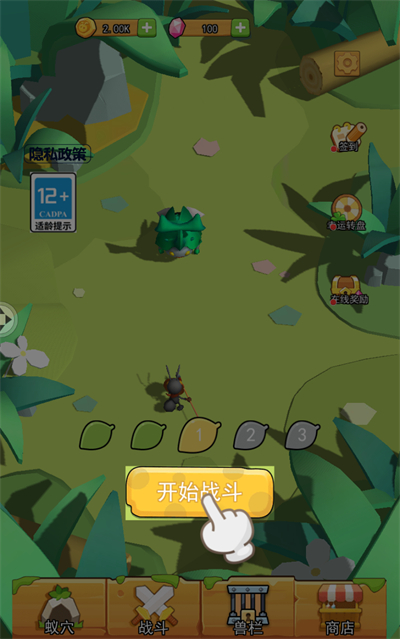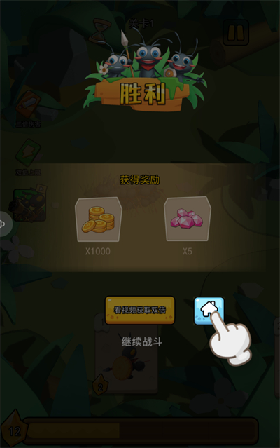 3、依靠众多的小蚂蚁将敌人击败后即可获得胜利,可以获得海量的金币以及钻石奖励,帮助你提升蚂蚁的能力。