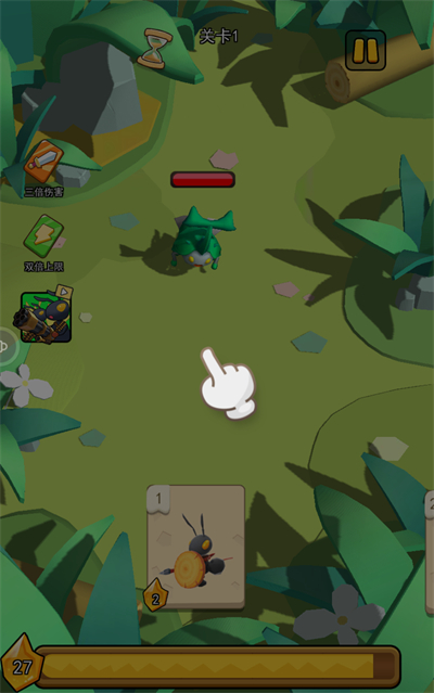2、点击后进入游戏战斗界面,通过滑动界面的方式可以召唤小蚂蚁,小蚂蚁会自动对敌人发起攻击;