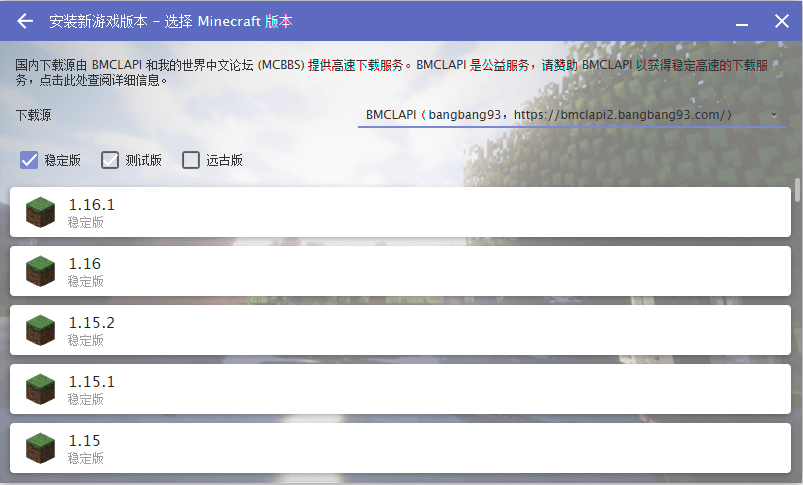 点右下角添加游戏,启动器会把所有版本的游戏全部列出来,包括正式版游戏与快照版游戏,点击自己需要的版本后,再点右边的箭头下载,游戏就开始下载了。(建议选择稳定版)