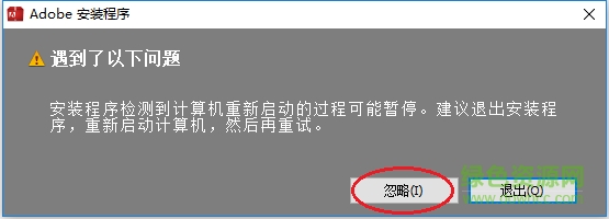 2.开始安装后会出现如下图这样的窗口,点击“忽略”按钮,会显示“正在初始化安装程序”,等一下就好了