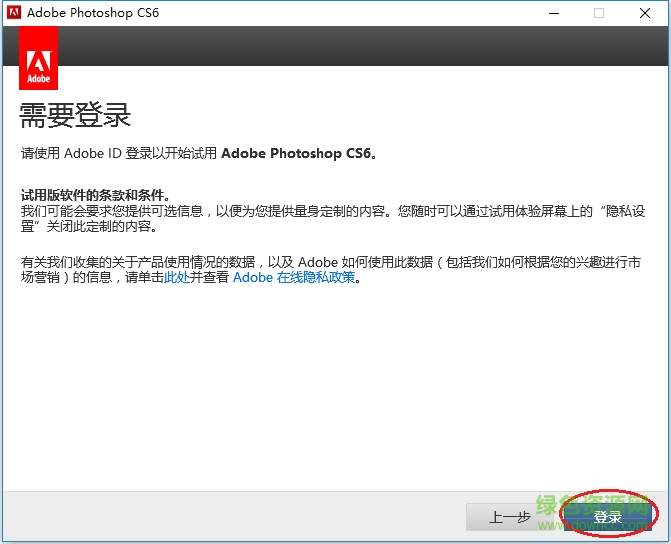 5.教程开始之前,不是让大家断网么!如果没断网的话,点完“接受”之后就会出现下图这样的提示,要我们登录Adobe ID,如果你有的话可以直接登录,没有的话可以在本页面创建。由于我们断网了,就不用登录了,会自动跳过这一步。