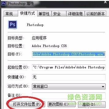 2、在PhotoShop CS6属性界面中,点击左下角的“打开文件位置”按钮。