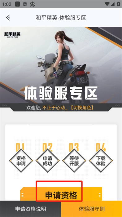 提示:想要申请测试资格,需要满足申请资格,然后在【和平营地app-营地工具-体验服申请】中去进行申请,网页版暂时无法申请。