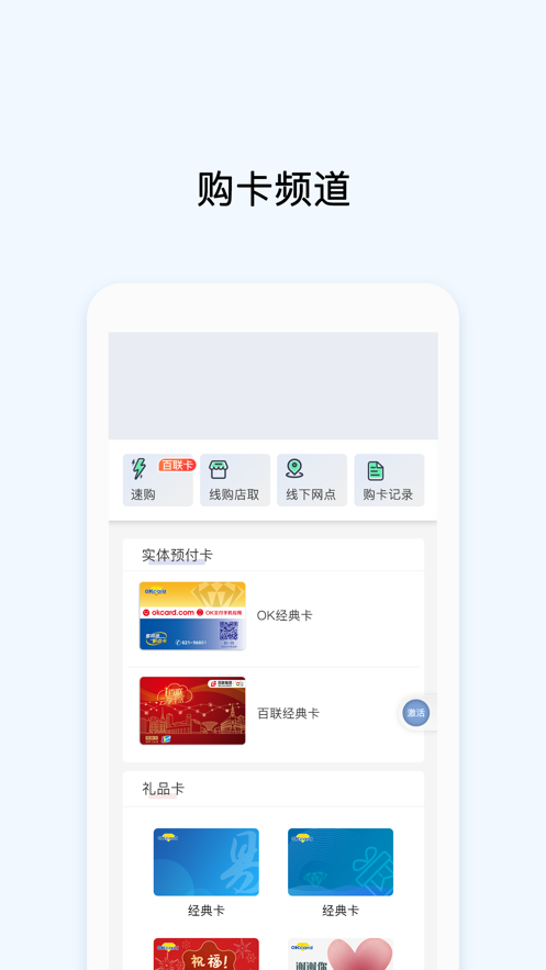 5.卡包功能:把手上OK卡装入卡包,自动查余额更可以用来支付。内置扫码支付更可在商场内轻松付款。