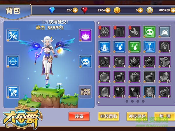 除开技能效果各有不同以外,神技的品阶又分为白、绿、蓝、紫、橙五个品阶,橙色为最高,打开背包,点击左下方的神技后可查看自己当前所装备的神技,小编在这里要提醒各位爵爷,千万不要得到高品质的神技后,就轻易的回收了低品质的神技。