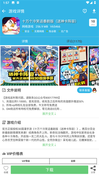 2、打开游戏详情页后,点击底部的【下载】按钮