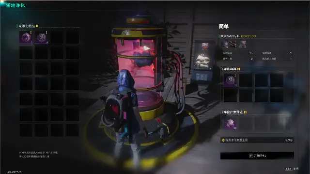 放置转换器后互动打开,界面左侧会显示超越者们拥有的所有回响,右侧则是领地净化的基础信息包括:难易度,净化防守时长,净化容器,净化产物等。超越者们将想要净化的回响放入容器后,右侧界面就会显示本次领地净化的详细信息,这样大家就可以根据难度和怪物数量、波次来提前准备道具或是召唤好友。