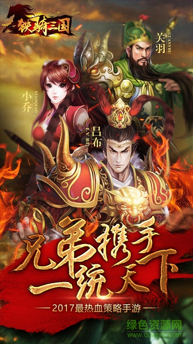铁骑三国是2017年度最新款的三国卡牌rpg对战手游,这款游戏中的经典三国故事背景给玩家带来了不一样的游戏体验,精彩的三国人设让玩家身临其境,享受三国策略对战的魅力。喜欢就赶快来绿色资源网下载试玩吧!