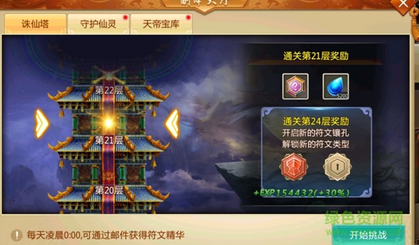 诛仙塔是《青云诀》单人副本中的一种特色玩法,类似于其他游戏中的爬塔玩法,通关指定层数可以解锁新符文类型和符文孔位,每天0:00系统会根据你的通关层数通过邮件发放一定数量的符文精华(用于提升符文等级)。