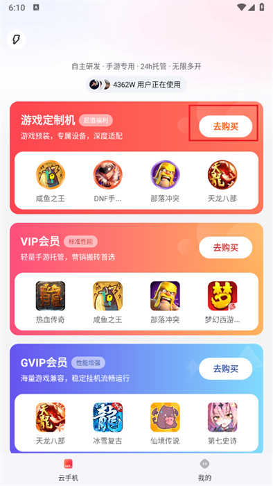 4、云管家免账号,游戏更省心云手机-私人专属游戏机,全方位云防护,无需透露游戏账号,也能让游戏随心无忧在线。