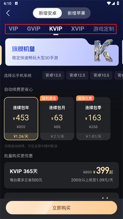3、版本选择好之后,则需要进行vip种类的选择,点击对应的vip即可;