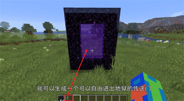 4、此时需要选择一个黑曜石来进行门内部的装饰,装饰完毕的门将会具有通往地狱的功能;