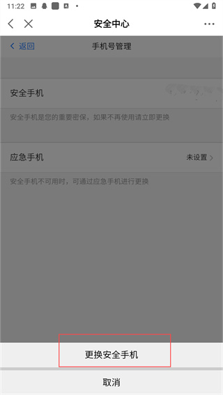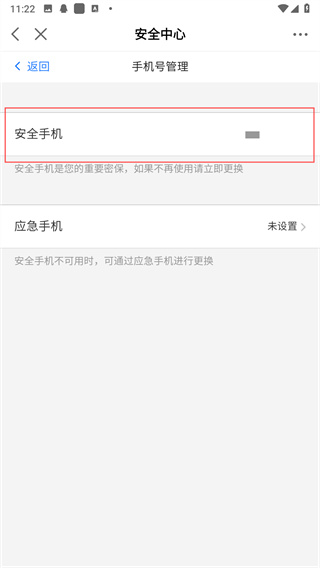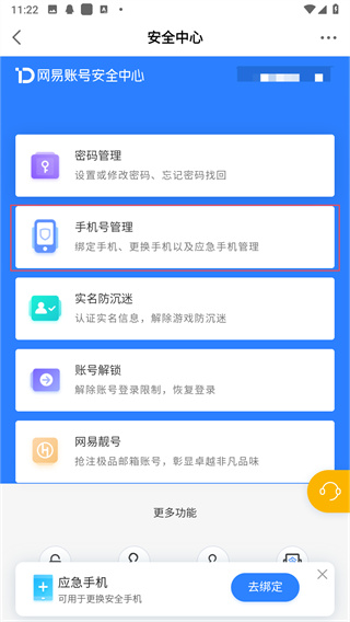 3、进入安全中心后,选择手机号管理,绑定手机、更换手机以及应急手机管理