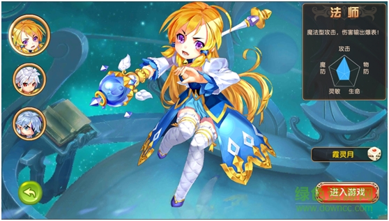 法师职业的代表人物形象是一个拿着法杖的萌妹子.她具有高攻击、低血防的特点,是一个不折不扣的魔法系小姑娘,可以打出超高伤害的哦