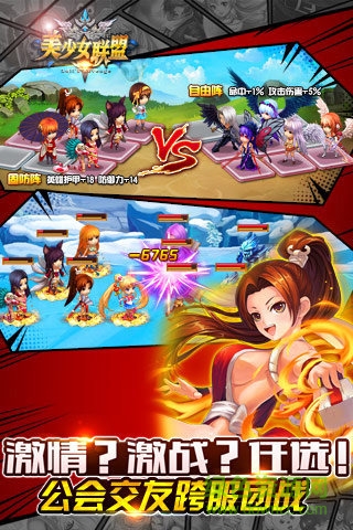 5、经典动漫游戏英雄荟萃,根据你的喜好组建二次元史上最性感强力阵容。射手黑岩、妖精露西、草帽路飞、盗墓者无邪等众多动漫人物任你搭配。没有最强只有更强,快来组建专属于你的王者阵容。