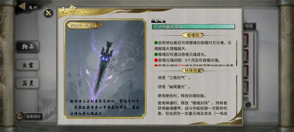 噬魂剑:吞宗主,吃天骄,杀天骄(全自动攻击吞到一定数量解锁技能,基本锁敌)