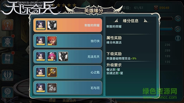 但《天际奇兵》的英雄缘分可不单单只是让玩家收集相应搭档或者装备的,当缘分激发之后,获得的属性加成奖励也是可以升级的,当英雄等级提升,彼此配合得更默契时,属性奖励也能随之升级,因此,英雄缘分是与角色培养息息相关的,想要获得更高的战力加成,必然要将英雄培养得更强悍。