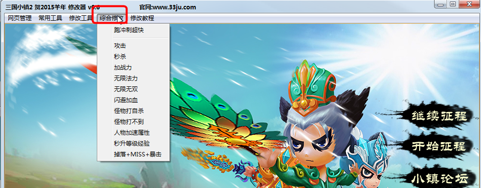 三国小镇2贺2015羊年修改器是4399游戏《三国小镇2》最新的辅助工具。软件功能强大,支持攻击修改、无限法力、无限无双、秒升级等功能。通过修改器,可以修改爆率,可以帮助玩家刷各种极品装备。赶快下载体验吧!