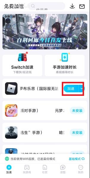 1、首先需要在手机上下载一个加速器、还有游戏安装包,然后我们需要打开加速器,在其中点击【加速】去加速游戏;