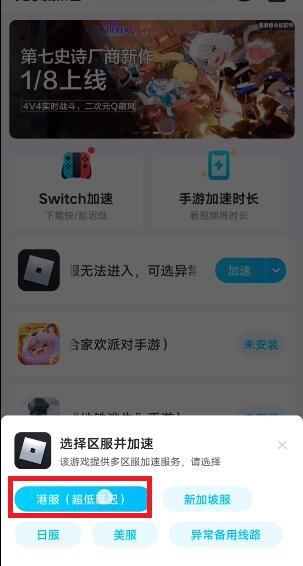 2、在服务器加速界面,点击其中的一个【服务器】,点击就可以进行加速;