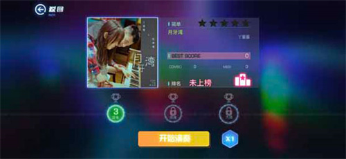 3.小编在这里以《月牙湾》为例,解锁玩歌曲后,“解锁歌曲”就会变为“开始演奏”,点击进入即可开始游戏;