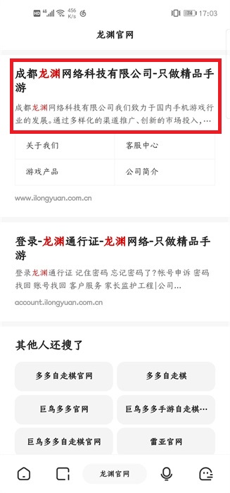 1、首先我们需要在百度中搜索到【成都龙渊网络科技有限公司】找到官网进入到官方网站;
