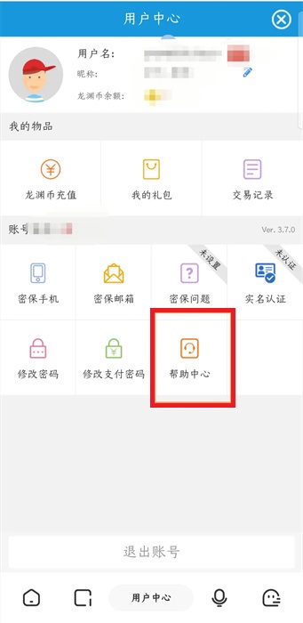 4、然后在我们的用户中心,找到【帮助中心】;