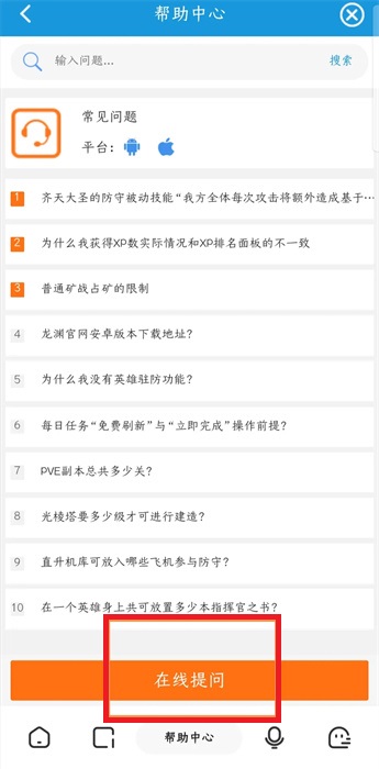 5、在帮助中心中可以看到下方的【在线提问】;