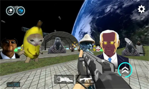 3、选择后回到场景中,将手枪的瞄准镜瞄准到想要放置的位置,并点击子弹按钮;