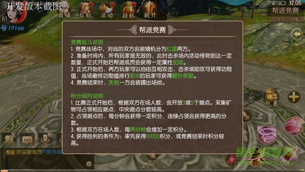2.准备时间内,所有玩家是无敌的,此时击杀场内活动怪物到达一定数量,正式开始后帮派成员会获得一定属性加成;