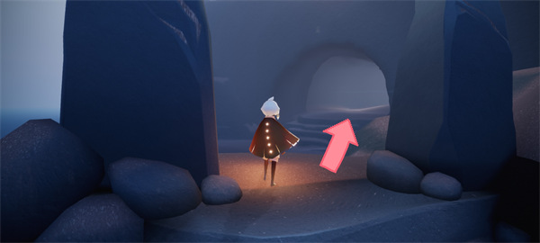 2、进入到这个地图中之后,我们就需要往前走,可以看到门后右边会有一个山洞楼梯,走进去;
