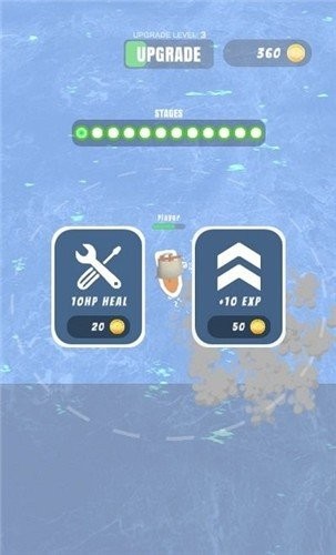 滑动屏幕控制自己的战舰在海面上移动,收集海上漂浮的各种资源,可以给战舰带来相应的升级效果。