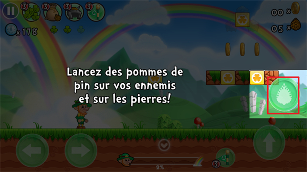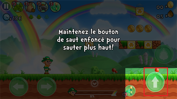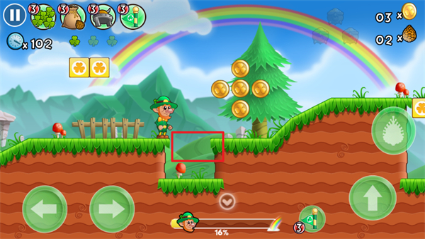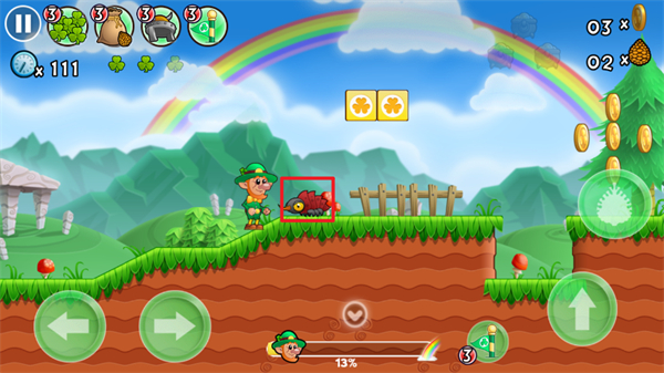 4、此时玩家将需要正式的开启游戏,遇到四叶草时,可以点击向上箭头按钮来进行金币的获取;
