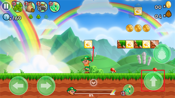 2、随后可以点击屏幕右下角的向上箭头按钮来进行角色的向上跳动;