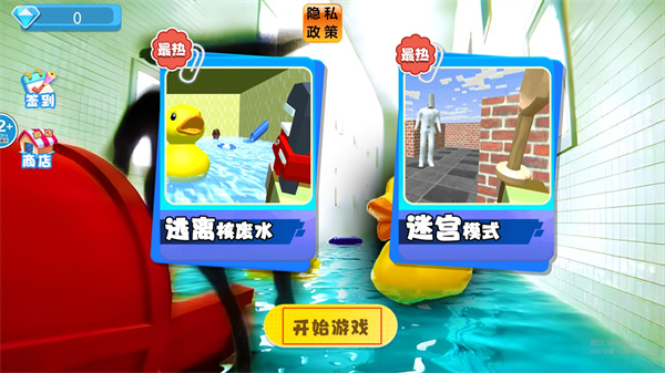 1、一进入游戏就会面对这样的游戏界面,在这里你可以选择不同的闯关内容,点击【开始游戏】就可以进入到游戏中;