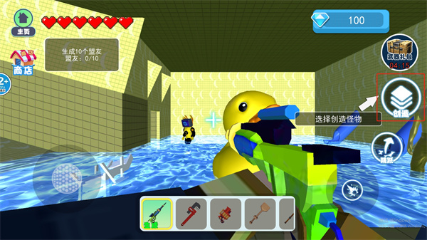 3、跟随着游戏的指示就可以开始游玩,点击右边的【创造】开启自己的冒险之旅;