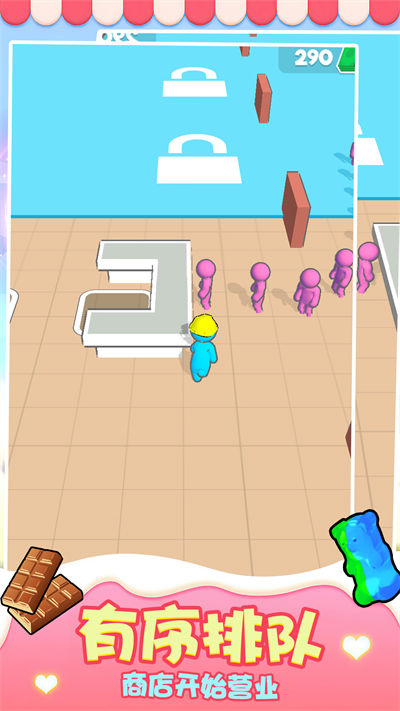 1、有序排队,完成工作,玩家作为工人时,需要和别的工人一个排队,一步步完成流水线工作;