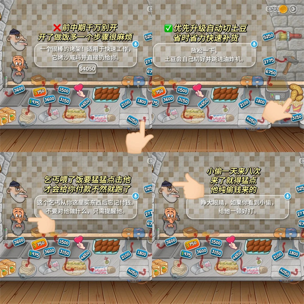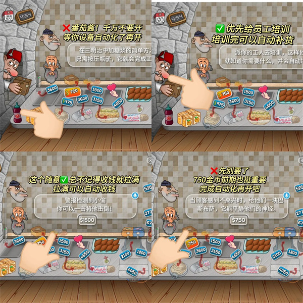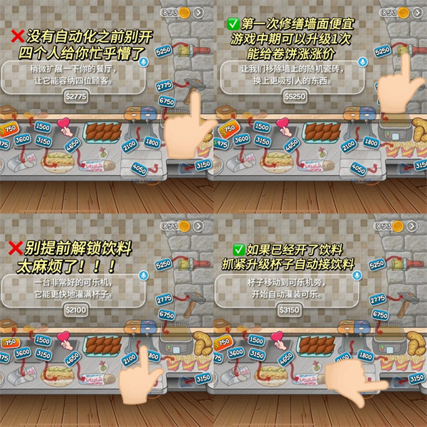 3、除设备店员以外的东西尽量越迟升越好(卷饼口味升级这个一定一定要放到最后超级好麻烦且很容易点错很锻炼大脑)