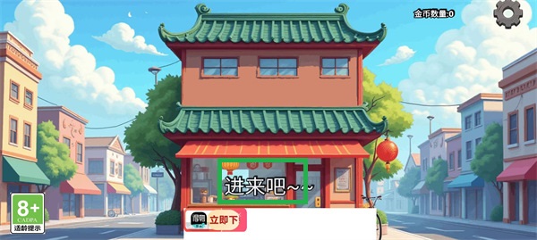 2、随后会进入到一个充满现代化的城市店铺门口,点击其中的【进来吧】就可以进入游戏开启经营;