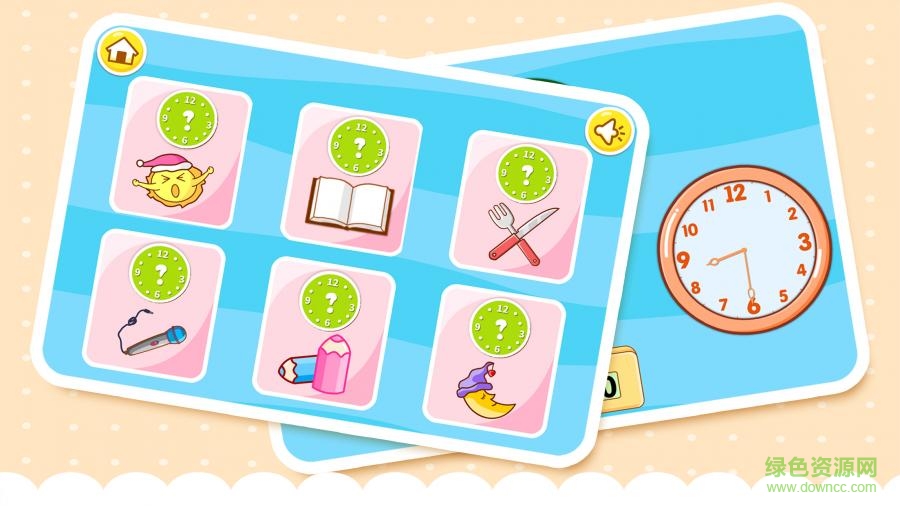 宝宝认时钟是一款专为适龄小朋友们打造的休闲小游戏,画面静止,帮助孩子们学习时间的知识,了解白天与夜晚,生活作息时间。还等什么,快来绿色资源网踊跃下载吧!