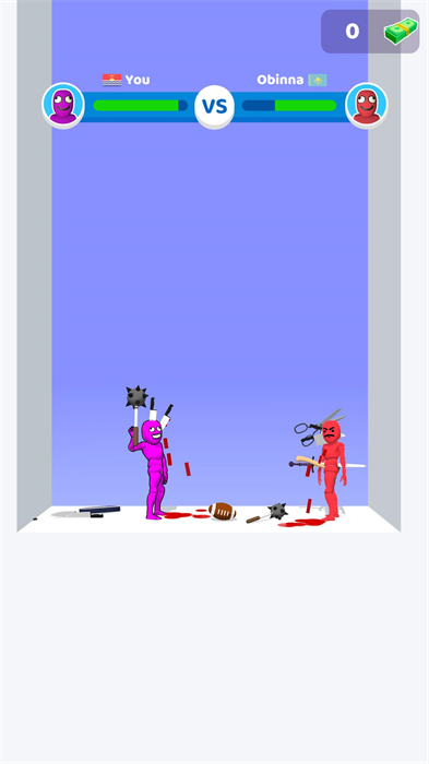 谁先阵亡1v2是一款多武器主题的竞技战斗类游戏,玩家将会以一个火柴人的形象出现在游戏中,为了能够顺利的取得不同战局的胜利,玩家需要不断的强化自己的战斗策略以及战斗方式,以确保自己能够将对方杀死,快来选择一个你擅长的道具,开启战斗竞技之旅吧!