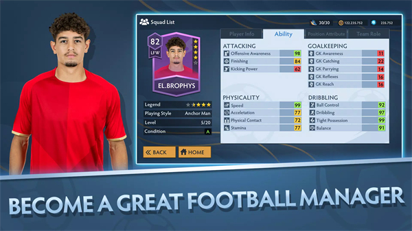24赛季足球经理是一款令人沉浸其中的足球类模拟游戏,该游戏采用了先进的图形技术和逼真的球员表现,让玩家在比赛中可以观察到球员的各种动作和技术细节,同时,游戏还提供了友好的用户界面和操作方式,使得玩家能够轻松上手并享受游戏的乐趣。