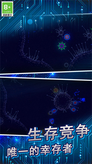 微生物进化世界是一款以探索微生物世界为主题的独特游戏,所有的风格和元素都是别具一格的,整个世界充满了未知和神秘的元素,所有的生物都是看不见的摸不着的,但有时它们会一直在我们身边跟随着我们,快来开启一段奇妙的微生物进化之旅吧!