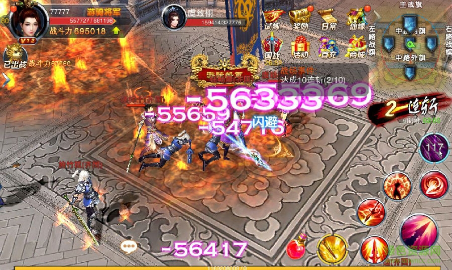 国战为皇城攻城战,进攻方拿下主战旗获得最终胜利。防守方在国战时间内,需力保主旗不倒!