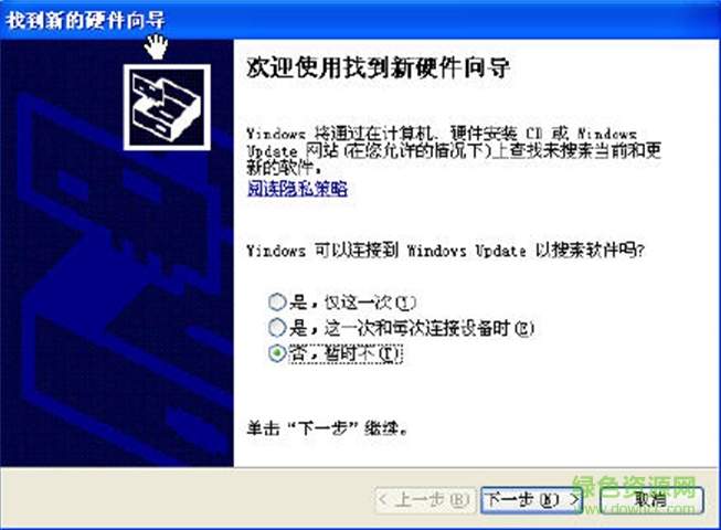 2、把光盘放入光驱中,点击按照上图选(否,暂时不),然后点击(下一步),出现如下界面。