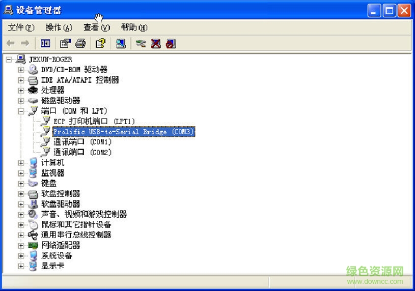 点击确定,完成安装后,在控制面板的“系统”属性中的设备管理器的“端口”中可以看到USB转COM 的端口号。(如下图例的COM3)