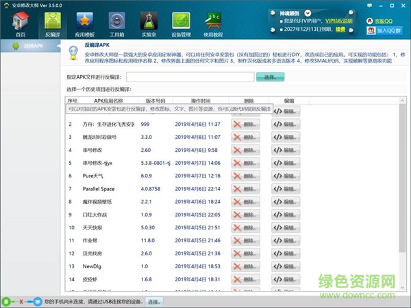 提供海量最新最全的应用作为定制模板,可以直接下载后进行反向工程、、修改、查看源代码、查看安装包信息等操作(部分应用由于做了加固,暂时不能进行反向工程)。
