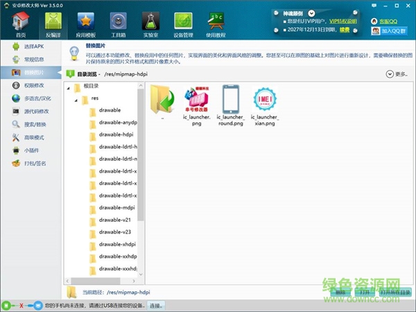 4.自动识别图像资源,并提供该类资源的快捷替换功能,方便修改这类图片资源。