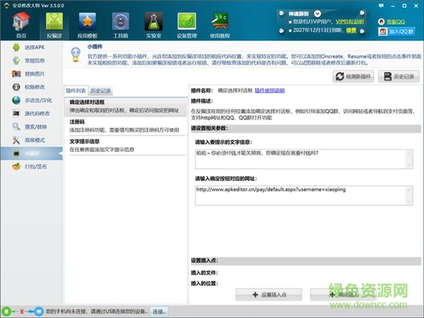 5.新增在线支付激活插件,可以云控方式设置应用的激活套餐,并可以直接在线支付后实现包月或者永久vip的功能