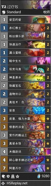 后手:赤红教士,粉丝俱乐部,造物协议,真爱永恒,观察鸟类,隐藏宝石(有赤红教士留),搬运工(对手在前期会有场面留),漏斗蛋糕(有赤红教士,皮普,或者赤红教士,造物协议,观察鸟类留)。